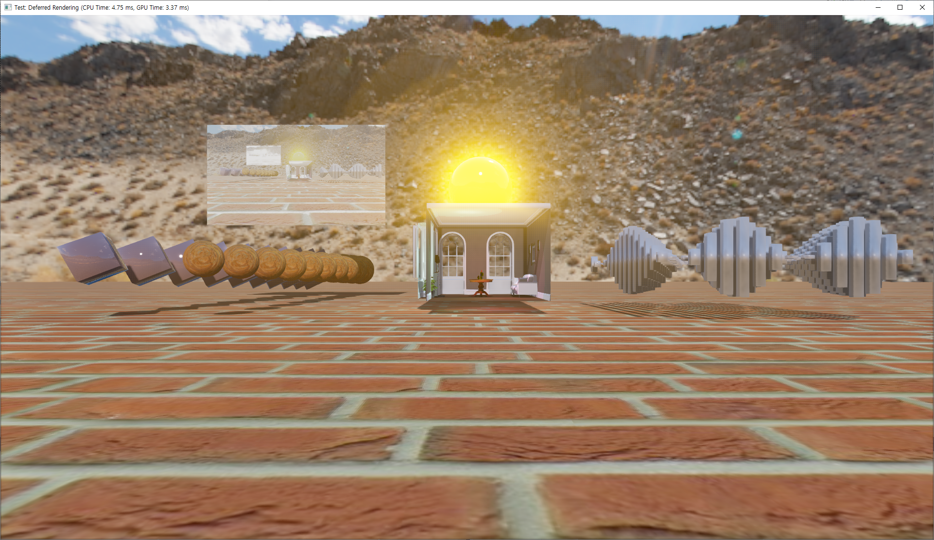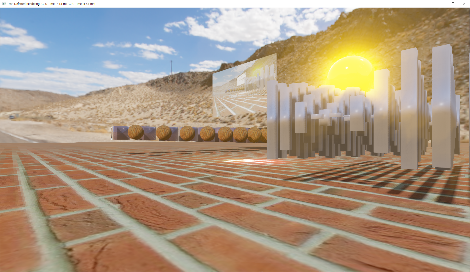 이렇게 기본적인 scene capture는 구현했고, 렌더 세팅이나 큐브맵 캡쳐 등 기능 보강을 더 해야 한다. 위 사진에서도 씬 캡쳐할 때는 G버퍼 unpacking까지만 하고 끝낼 수 있어야 하는데 포스트 프로세싱까지 다 돌아서 톤 매핑이 두 번 먹혔다.