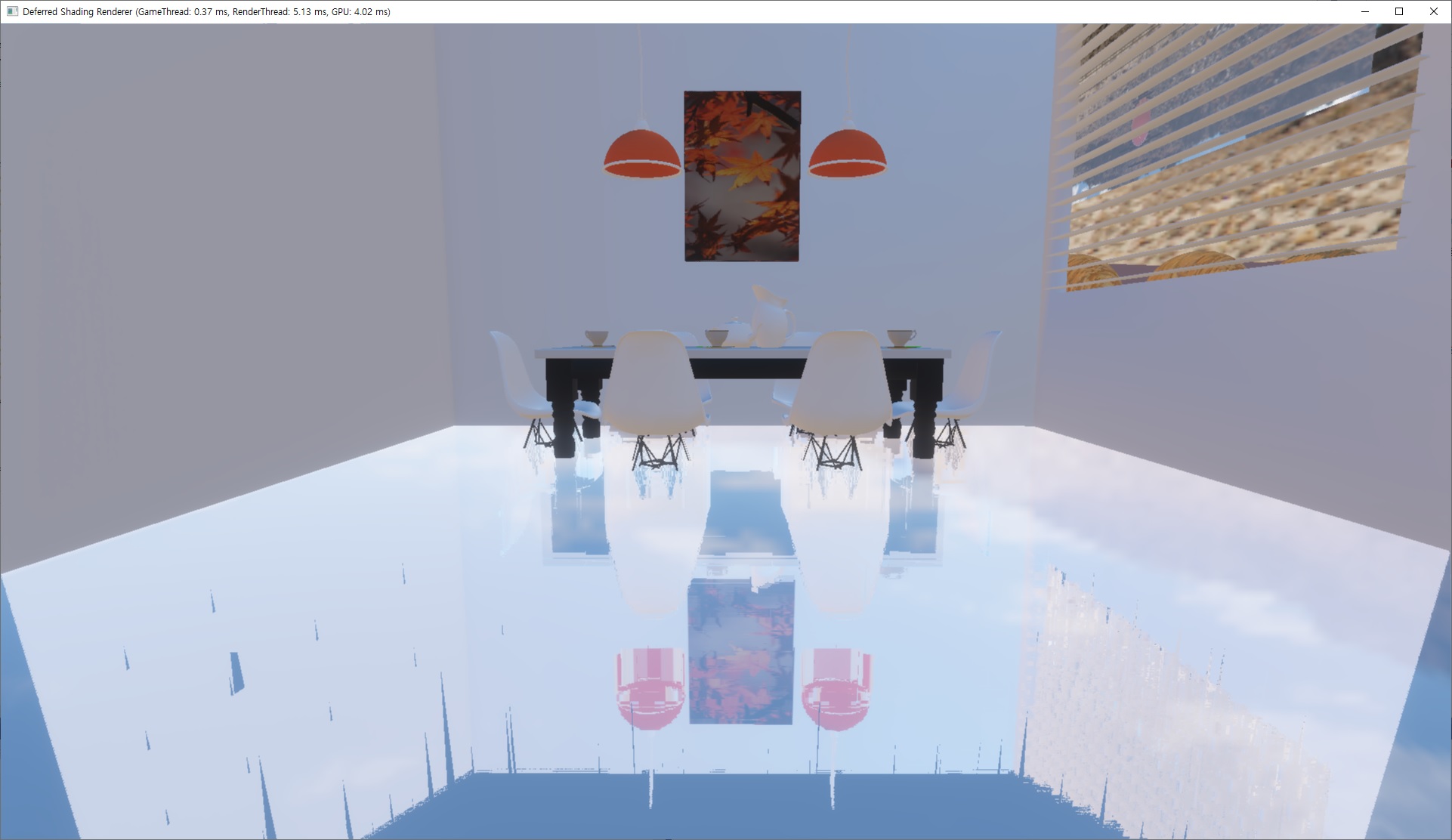 원래는 이런 식으로 돌아갔는데, 먼저 direct lighting과 indirect lighting 패스를 분리해서 direct lighting 결과를 라이팅 렌더 타겟에 출력하고, indirect lighting은 그 렌더 타겟에 color blending ADD로 더한다. 지금은 indirect lighting이 아주 단순한 형태지만 추후 무거운 GI를 구현하게 될 경우 indirect lighting은 더 낮은 스크린 해상도에서 계산하고 업샘플링을 해야 할 것이다.