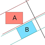 축 분리 정리(분리축 정리)는 컴퓨터에서 두 볼록 물체의 교차 판정을 논할 때 흔히 언급되는 정리다. 두 물체를 투영한 구간(interval)이 겹치지 않는 축이 하나라도 존재한다면, 두 물체는 교차하지 않은 것이다. 간단한 그림을 몇 가지 그려보면 금방 그 의미를 알 수 있다. 인터넷에서 이 정리를 검색해보면 대부분은 바로 구현으로 넘어간다. "자, 이런 정리가 있어. 그러니까 우리가 앞으로 할 일은 각각의 모서리를 분리축으로 활용해서 투영을 하면 그 경우의 수가 MN + M + N가지고 시간복잡도는 이러쿵저러쿵..." 여기서 수학적인 부분을 확실하게 따져보자. 축 분리 정리를 간단하게 증명해보자. 두 볼록 도형 A, B가 교차할 때, 그 교집합을 ($ I = A \cap B \neq \phi $)이라..